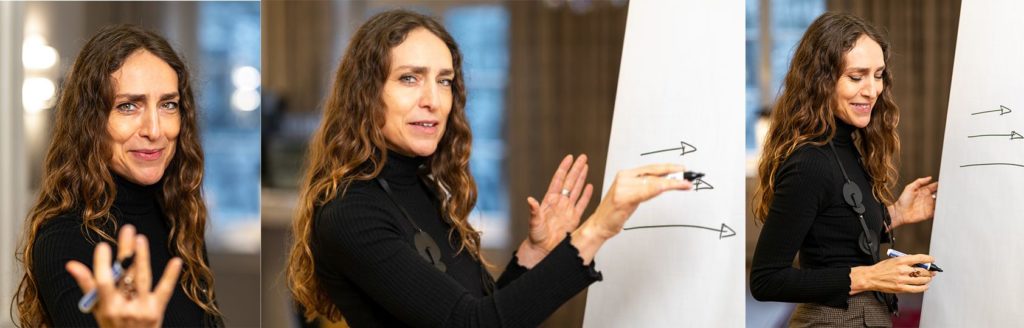 Ein Aspekt ist die Klarheit von Sprache und Haltung im jeweiligen Kontext. Als Rhetorik- und Kommunikationstrainerin analysiere ich Muster und gebe spezifische Tipps. Neben direktem Feedback der Gruppe geben Videoanalysen die Möglichkeit, die eigene Wahrnehmung mit der Außenwirkung abzugleichen.